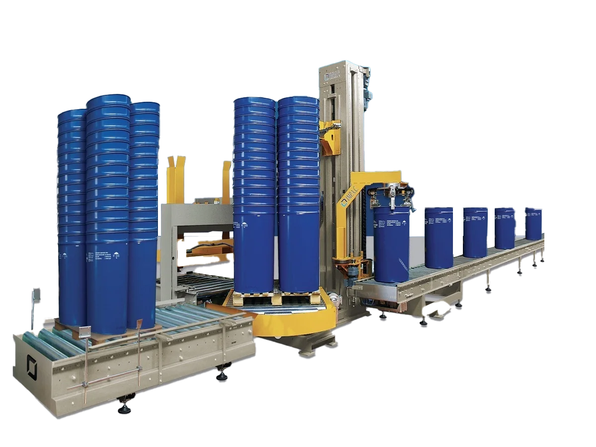 Grazie alla tecnologia a braccio rotante, il pallet rimane fermo durante il ciclo, garantendo un’operazione stabile e sicura, particolarmente indicata per carichi instabili o di grandi dimensioni.
