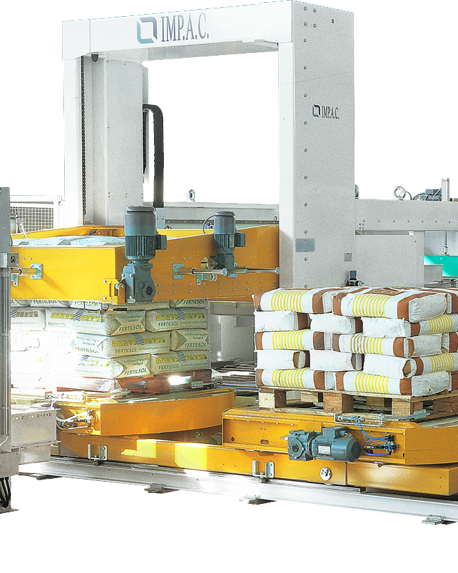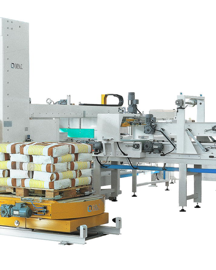 With a maximum production capacity of 900 bags/hour, the IMP.A.C. 13 AMY is a reliable ally for increasing the efficiency and quality of palletising operations in production lines.