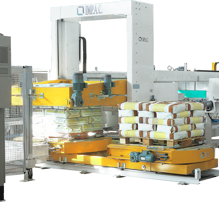With a maximum production capacity of 900 bags/hour, the IMP.A.C. 13 AMY is a reliable ally for increasing the efficiency and quality of palletising operations in production lines.