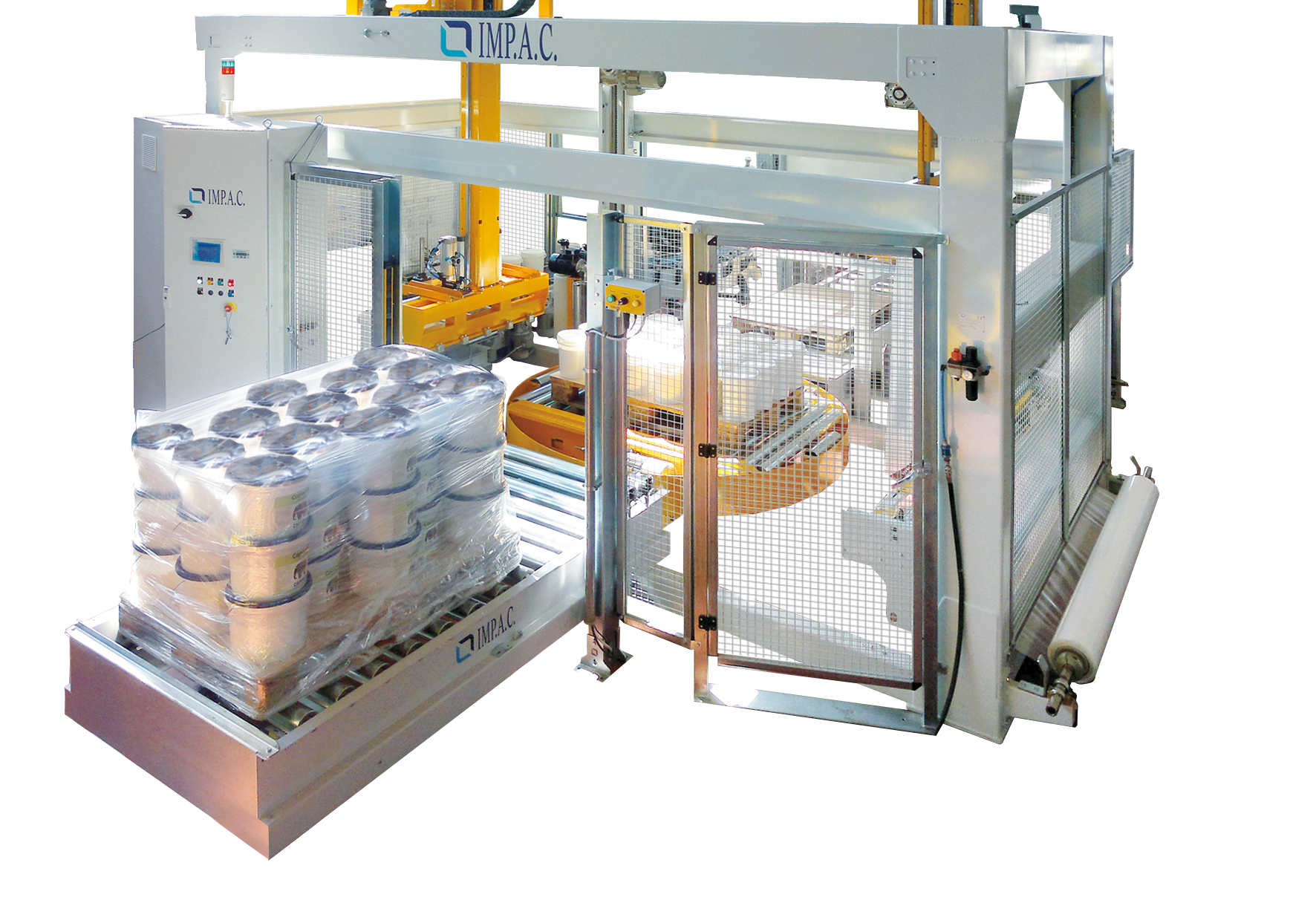 IMP.A.C. ROBOTEX 525 A-PR+TOPCartesian bucket palletising robot with integrated automatic winder and cover top