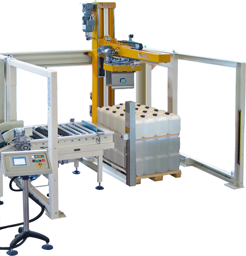 The IMP.A.C. ROBOTEX 526 A-PT is the perfect solution for those who need a compact, efficient and versatile palletiser for canisters of any size.