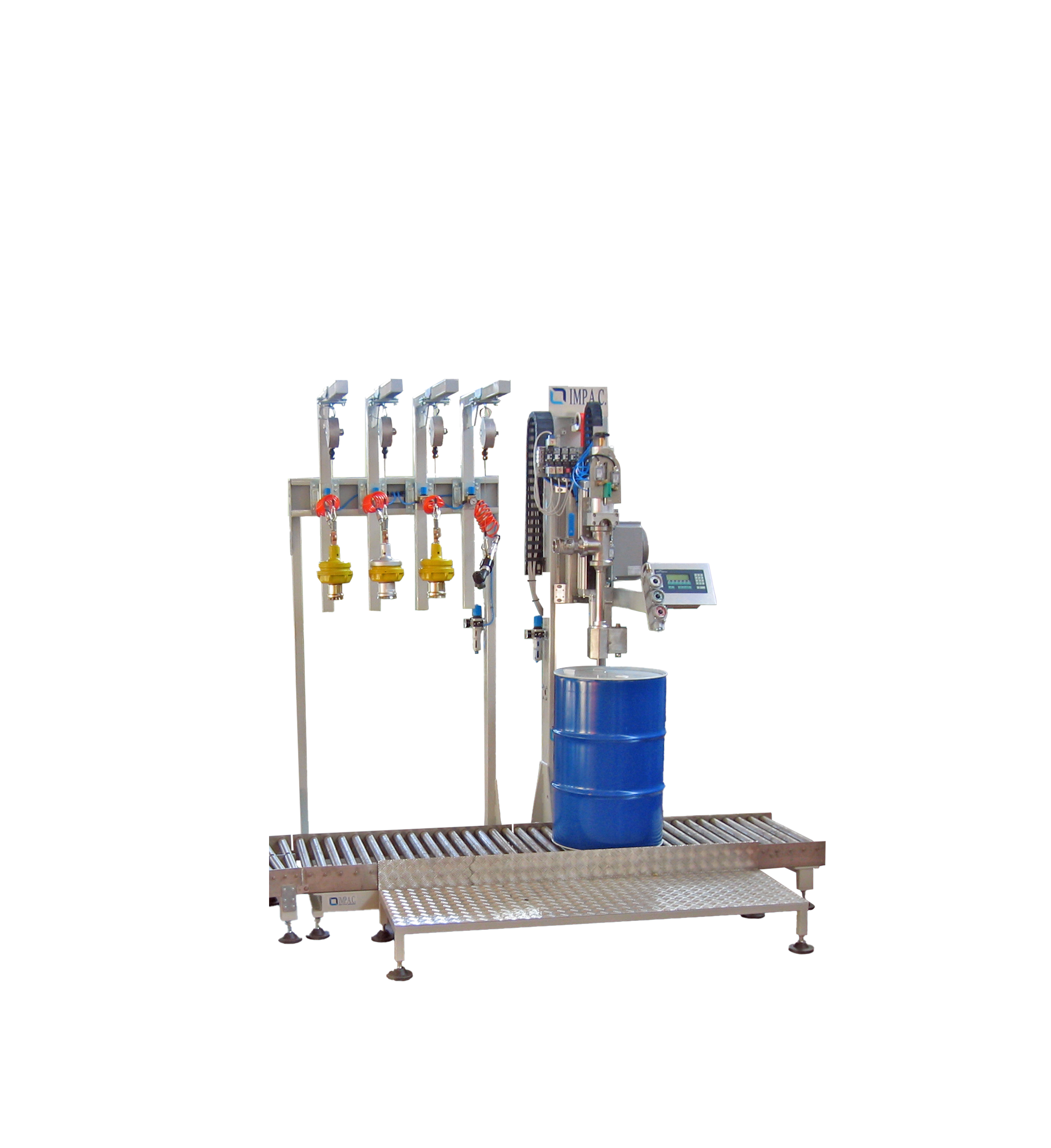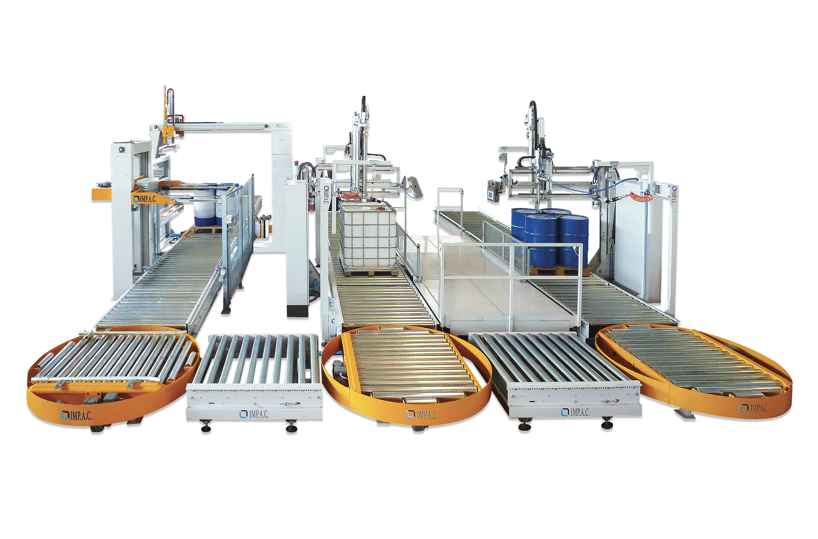 We created a condition of total mobility in all directions. A programmable modular system (PLC) coordinates all machine movements, which can be programmed to palletise drums of different sizes, formations and number of layers.