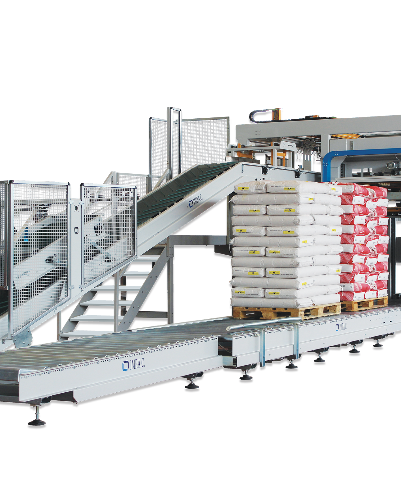 Thanks to the layer palletizing system and the compaction mechanism on all four sides, it ensures stable and uniform loads, even when handling difficult-to-manage sacks.