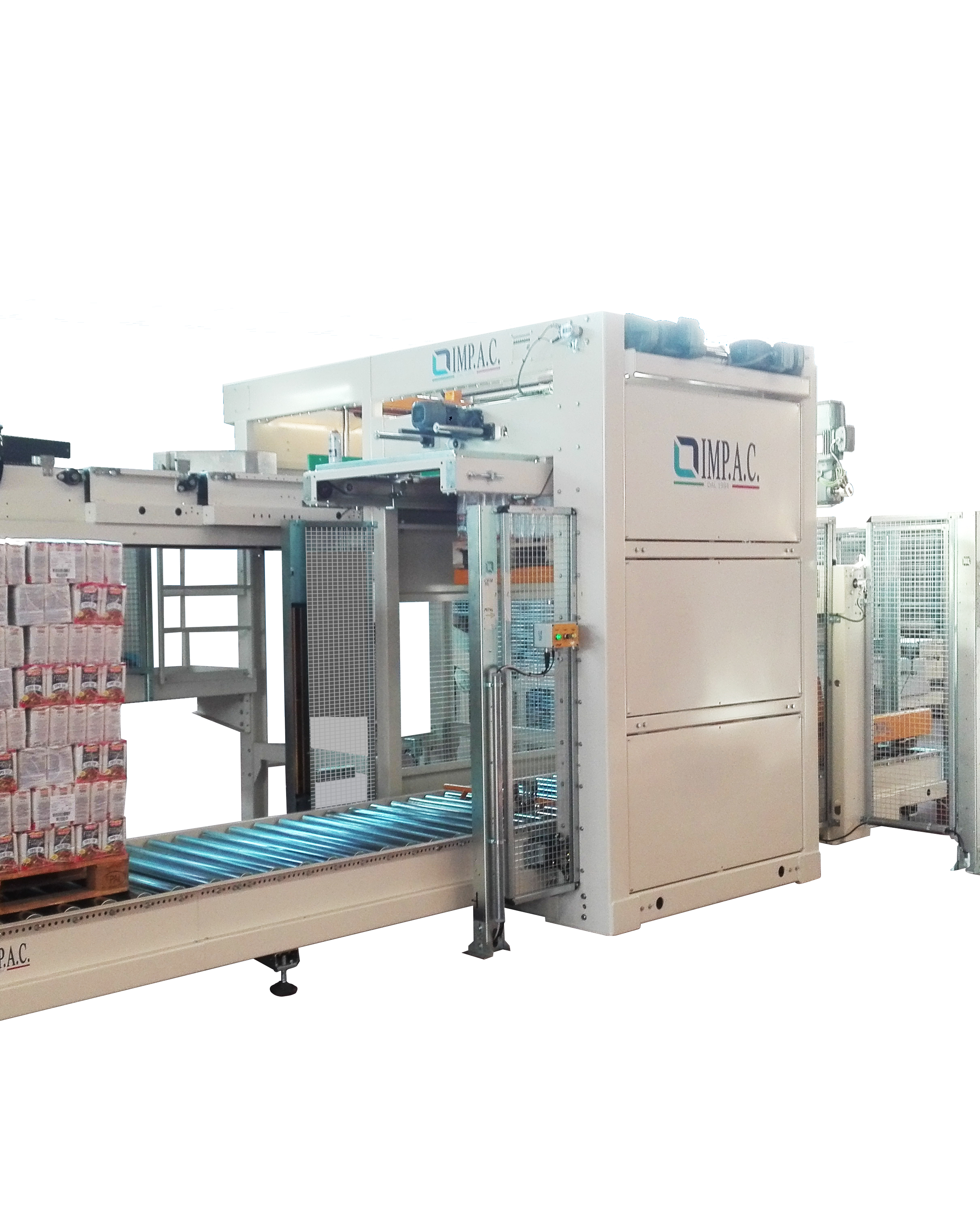 Il pallettizzatore IMP.A.C. 21 A è la soluzione ideale per le esigenze di alta produttività, con una capacità massima di 1500 cartoni-fardelli/ora.